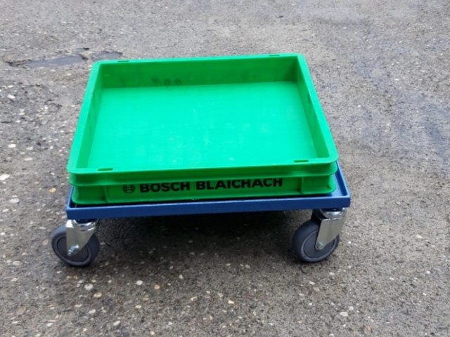 Transportwagen mit Plattform für elektronische Bauteile basierend auf EU-Boxen der Größe 600X400 mm