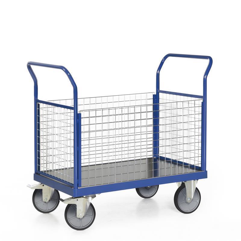 Industrijski voziček je opremljen z dvema fiksnima (ali gibljivima) kolesoma in dvema gibljivima kolesoma z zavoro. Kolesa, ki ne puščajo sledi, so narejena iz sive TPE (termoplastične gume) na platiščih iz PP (polipropilena). Kolesa se tiho in gladko vrtijo na krogličnih ležajih.
