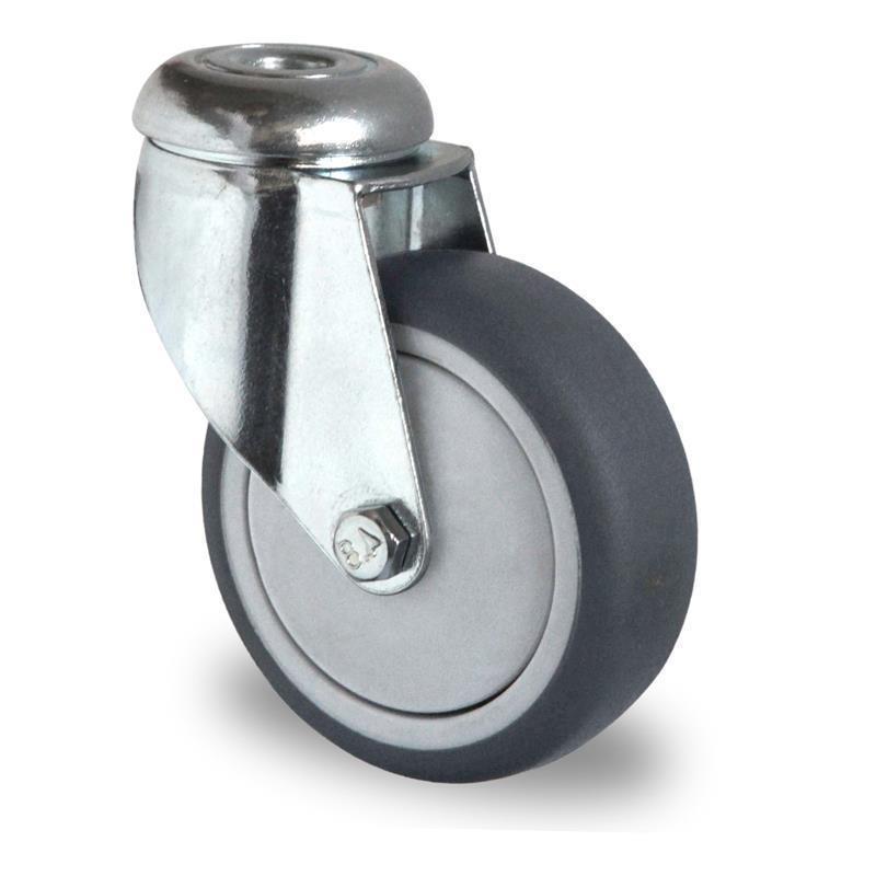 Gibljivo transportno kolo za pohištvo in ustanove dimenzije 75 mm iz polipropilena in termoplastične gume, ki ne pušča sledi. Pritrjuje se s pritrditveno luknjo za vijak, ima kroglični ležaj in dinamično nosilnost (do 4 km/h) 75 kg.